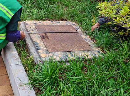 公園內(nèi)的智能井蓋能夠監(jiān)測(cè)雨水排放情況,以防止因積水導(dǎo)致的不便和安全問題。