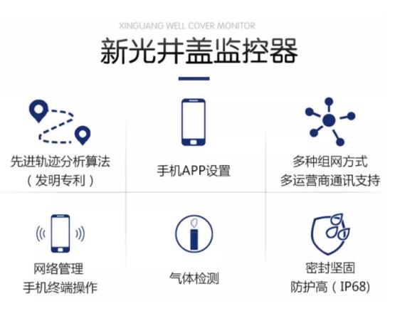 新光智能作為已經(jīng)頒布實施的國家標準《智能井蓋》的主編單位,將現(xiàn)有的物聯(lián)網(wǎng)智能技術、軌跡分析算法(發(fā)明專利)等技術應用到井蓋上,推出了井寶智能井蓋監(jiān)控器,實時監(jiān)測井蓋狀態(tài),一旦井蓋發(fā)生傾角、位移、異常開啟等,監(jiān)控器觸發(fā)報警并啟動處理機制,便于工作人員能夠及時處理。