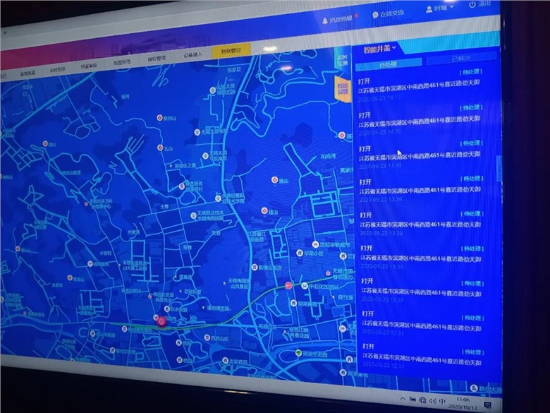 只要窨井蓋被打開和移動,就會遠(yuǎn)程發(fā)出預(yù)警信息,管理人員的平臺就能接收到。