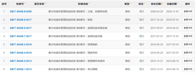 為了規(guī)范數(shù)字化城市管理信息系統(tǒng)的建設與運行,推進城市管理數(shù)字化、精細化,加快數(shù)字化城市管理向智慧化升級,提高城市管理和公共服務的水平與效率,住房和城鄉(xiāng)建設部制定《數(shù)字化城市管理信息系統(tǒng)》(GB/T30428)系列國家標準。2013年,由全國智標委歸口管理,北京市東城區(qū)城市監(jiān)督管理中心等單位起草的《數(shù)字化城市管理信息系統(tǒng)第1部分:單元網(wǎng)格》和《數(shù)字化城市管理信息系統(tǒng)第2部分:管理部件和事件》正式發(fā)布,此后2016年至2020年《數(shù)字化城市管理信息系統(tǒng)》系列標準相繼發(fā)布實施。