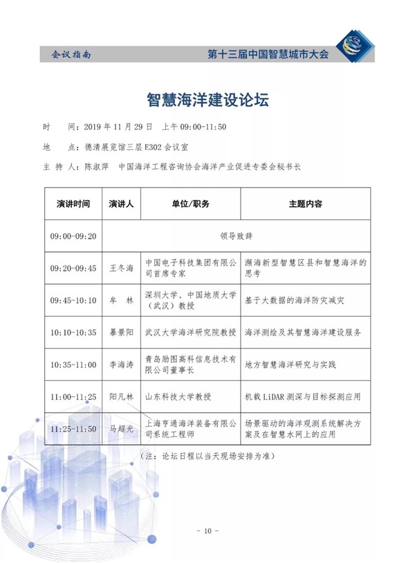 由中國測繪學會、中國城市公共交通協(xié)會、中國海洋工程咨詢協(xié)會、德清縣人民政府共同主辦的第十三屆中國智慧城市大會,將于2019年11月28日至30日在浙江德清國際會議中心舉辦。